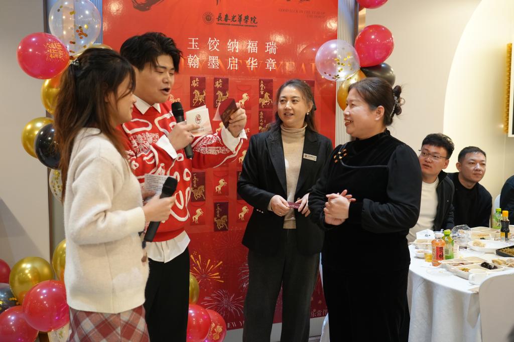 12月25日下午,北校区沐味咖啡暖意融融、笑语盈盈,我校一年一度的“玉饺纳福瑞,翰墨启华章”迎新年包饺子送福联活动在此温情启幕。学校领导班子成员,各教学院(部)负责人、各党总支副书记与师生代表欢聚一堂,以传统习俗为纽带,共叙师生情、同迎新年来。