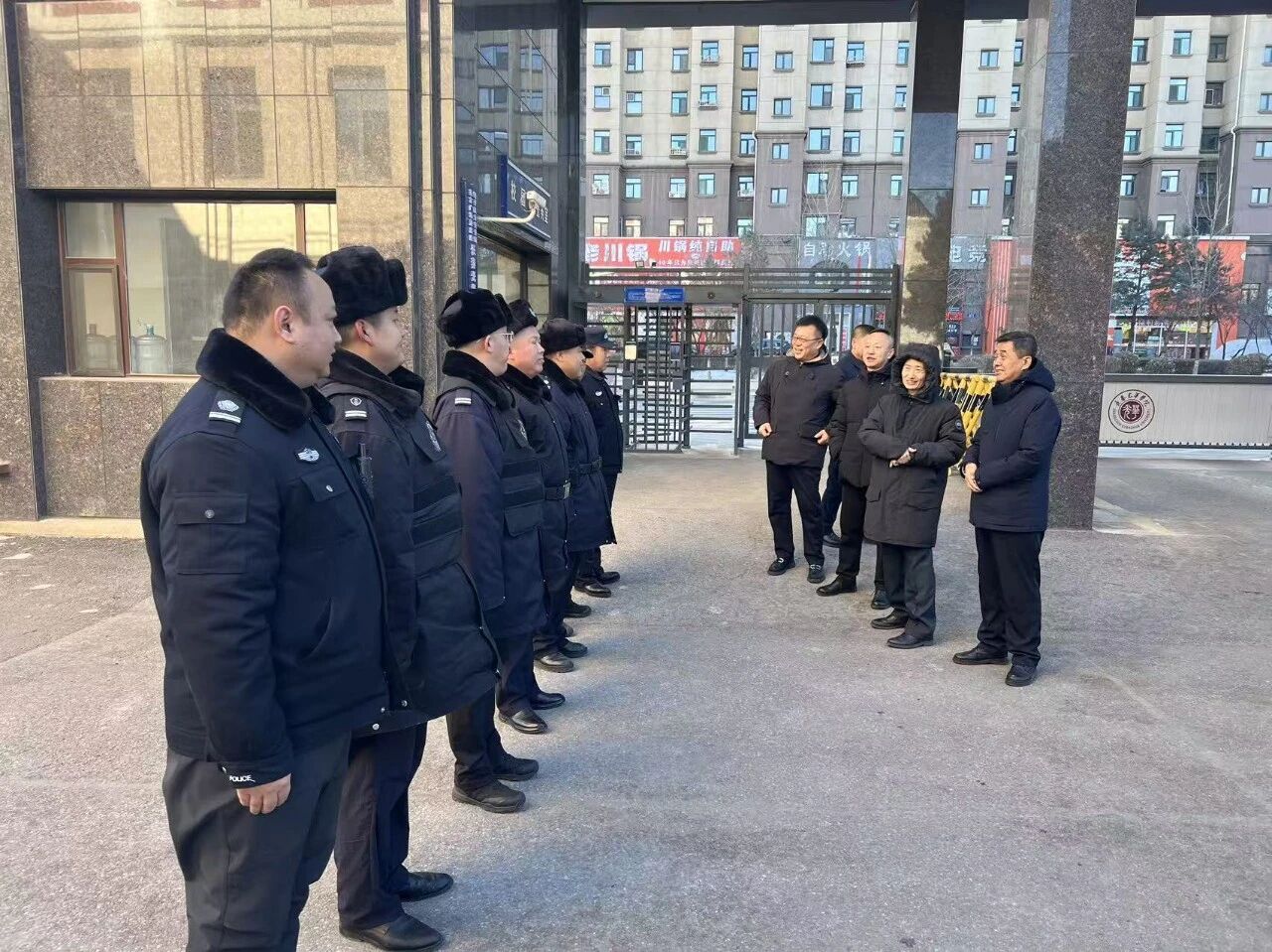 在南、北校区各门卫值班点,学校领导详细询问安全保卫相关安排,强调春节期间要持续筑牢安全防线,加强巡查值守,及时排查隐患,完善应急预案,确保校园安全稳定;在各学生公寓,学校领导与值班老师亲切交流,对他们放弃与家人团聚、坚守公寓值守岗位、守护学生住宿环境安全的付出表示衷心感谢;在水电暖值班室,学校领导仔细检查设备运行与维护记录,叮嘱值班人员务必做好供应保障,确保设施平稳运行;在东校区,学校领导对在岗值班人员的敬业奉献表示衷心的感谢并与大家合影留念;在大学生实习就业基地,厉刚副校长嘱咐大家要提高安全防范意识,加强巡逻,细致排查,确保消防、水电、安防等各个环节万无一失。