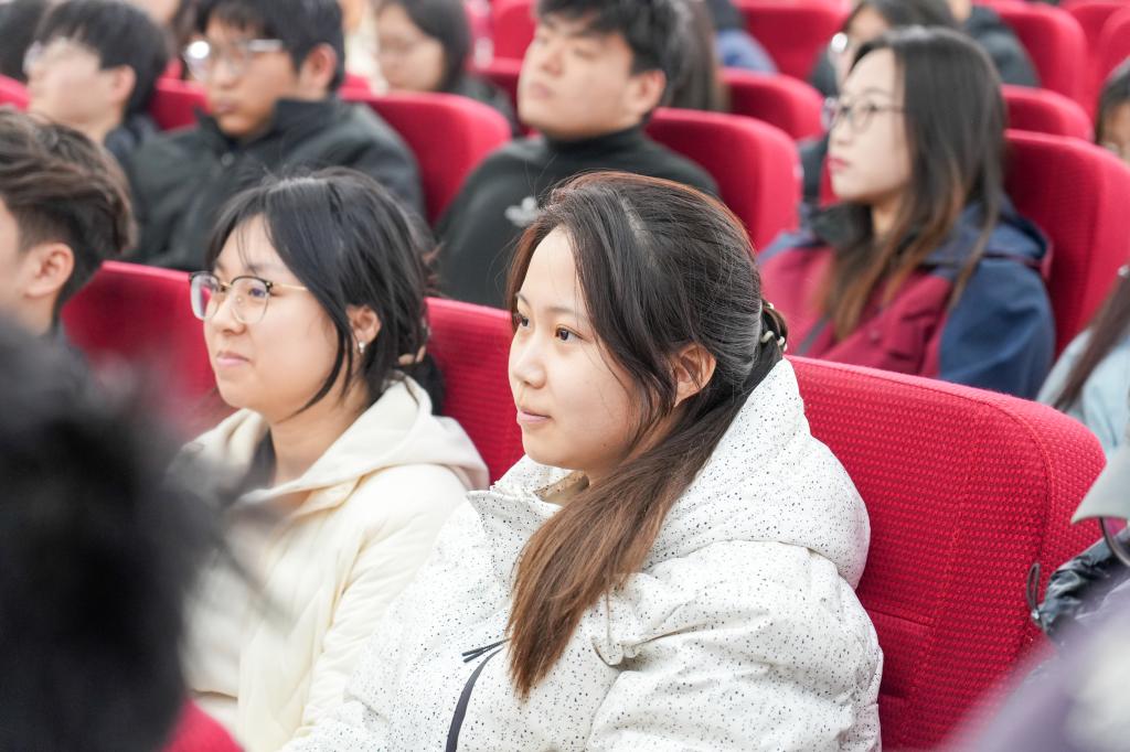 互动交流环节,同学们围绕专业学习规划、国企职场发展、HR数智化技能提升、求职就业准备等问题踊跃提问,田志伟校友结合自身经历逐一细致解答,给出针对性建议,现场交流氛围热烈融洽,有效帮助同学们明晰职业方向、化解成长困惑。