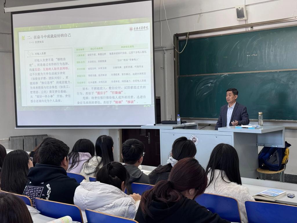 为进一步落实立德树人根本任务,充分发挥校领导在思政教育中的引领示范作用,10月23日上午,校长李晓光教授走进思政课堂,以“在奋斗中成就最好的自己”为主题,为会计专业学生带来一堂深刻且温暖的思政课。