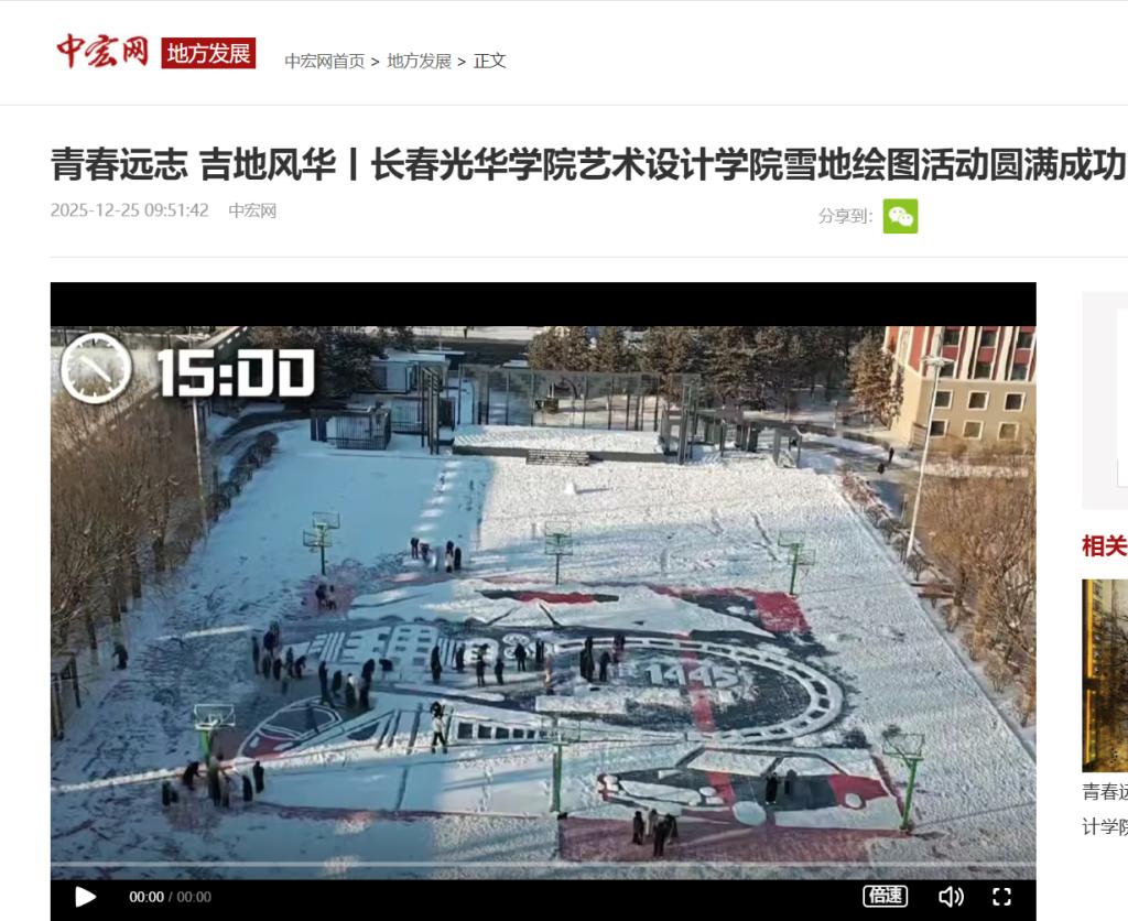 中宏网|青春远志 吉地风华丨长春光华学院艺术设计学院雪地绘图活动圆满成功