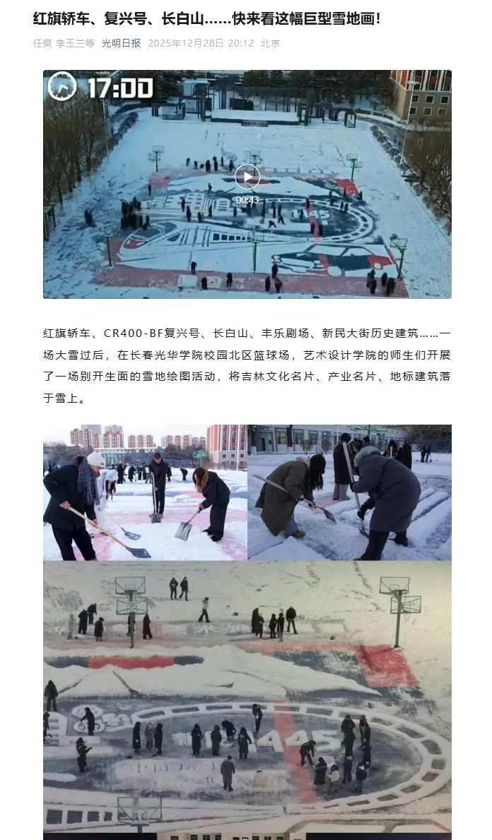 光明日报|红旗轿车、复兴号、长白山……快来看这幅巨型雪地画!