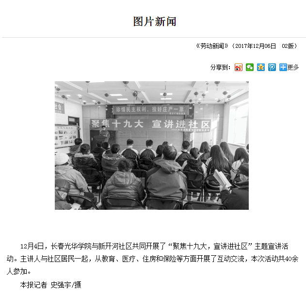 【劳动新闻】报道我校“聚焦十九大,宣讲进社区”主题宣讲活动