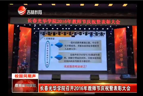 【吉林教育电视台】长春光华学院召开2016年教师节庆祝暨表彰大会