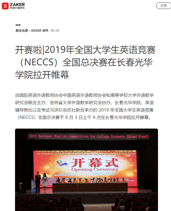 新文化报|2019年全国大学生英语竞赛(NECCS)全国总决赛在长春光华学院拉开帷幕