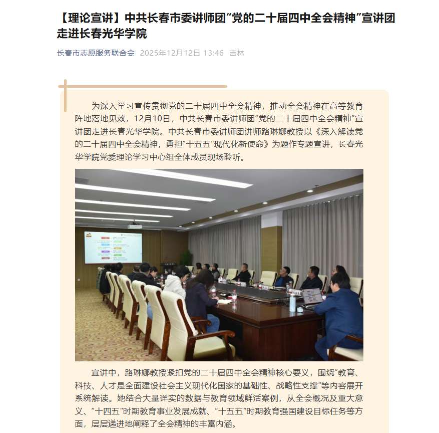 长春市志愿服务联合会|【理论宣讲】中共长春市委讲师团“党的二十届四中全会精神”宣讲团走进长春光华学院